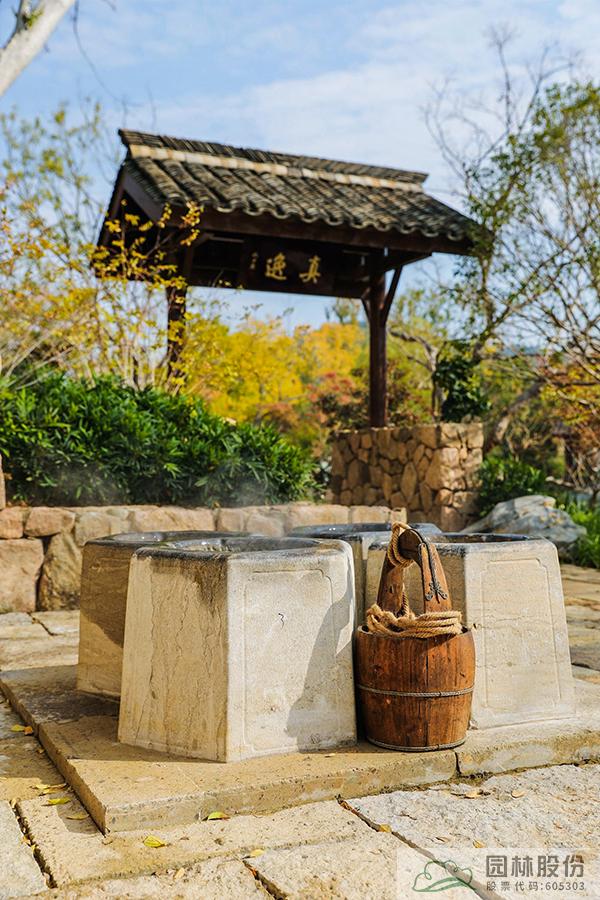 问茶:展区以龙井山园为主景进行打造,种植2000余株龙井“43号”。茅草双亭立于山顶,为欣赏整个展园的佳处。周边山色青秀、泉水淙淙,体现出西湖人问山、问水、问茶的游赏情致。