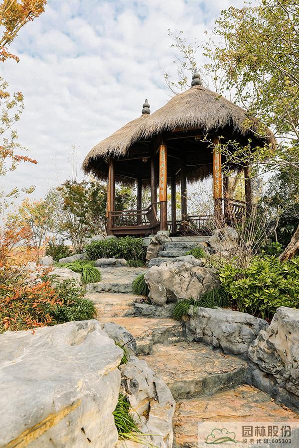 植物景观:为紧扣设计主题,选用了适宜当地生长、形态优美且体现杭州特色的植物,包括银杏、金钱松、三角枫、沙朴、乌桕、水杉、桂花、鸡爪槭、山茶等共计150余种(含品种),69个科106个属。通过近自然、群落化的植物配置手法,展示出了杭州师法自然、雅致清丽的植物景观艺术美。虽因疫情影响,本届园博会几经推迟,但时间也验证了园内植物群落的稳定以及可持续发展的理念。
