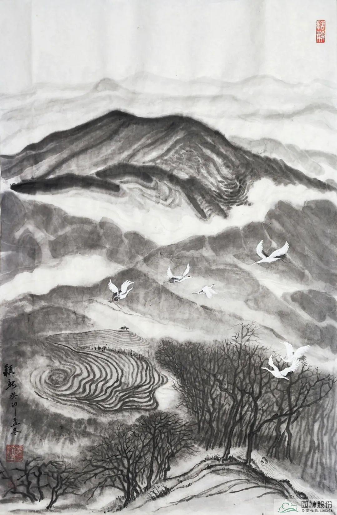 其中,乐动注册办公室主任李颖新以径山美景为创作内容的书画作品成功入选前20名。作品以杭州径山及国家级美丽休闲乡村-小古城村的自然景观、乡村风情、茶园风貌、翩翩白鹭等作为创作素材,主要表达在新时代背景下,随着乡村振兴战略的全面推进,一幅幅人与自然和谐共生的美丽画卷正在神州大地徐徐展现。图中山峦起伏、云雾氤氲、茶园连绵、溪水潺潺、白鹭纷飞……共同绘就一幅意境唯美的乡村风情画卷,留下一段令人念念不忘的乡愁记忆。