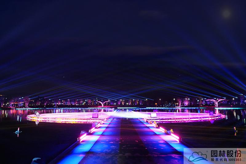 旨在打造成为川西最具规模、最具独特创意的光影喷泉秀,结合现有水域,营造出清澈激灵动的特色。水秀的表演则以唯美灵动、色彩绚丽的表演配合水上透明舞台上演员的轻歌曼舞,在空中光影形成的多彩穹顶的环抱下,展示出一个美轮美奂的“天空之境”。结合本项目特殊的自然环境条件,如此有针对性的设计创意,有效解决了因大开阔的区域缺少高低层次,山体林木距离主秀区距离较远带来的暗夜压迫感和孤寂感,实现了全视野、多层次的丰富绚丽夜游体验。